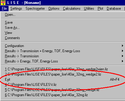 To correct this unpleasant incident, it is necessary to edit the file LISE.ini, which is in the LISE root directory (standard path is c:\program files\lise). The mistake is caused by MRU section (see below the fragment of "lise.ini", the MRU2 value corresponds a zero line). To correct this problem, it is necessary to enter a filename on the blank line (preferably a LISE file :-). This mistake will be corrected in the near feature.