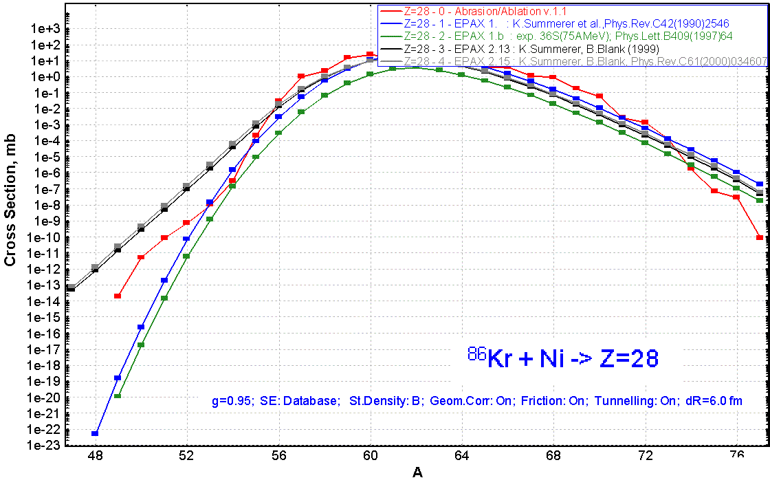 The use of the effective barrier can have various consequences. For example, when the sum of the separation energy and the Coulomb barrier is positive, the nucleus is bound. However it is not excluded that at the same time the sum of the separation energy and the effective Coulomb barrier is negative (as the effective Coulomb barrier is less the standard barrier). In this case the nucleus is unbound and the program will show zero cross-section for its production.