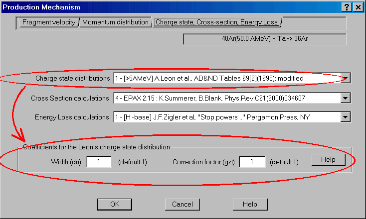 For the analysis given the same work that was mentioned earlier, parametrization of charging conditions was modified (A.Leon et al, AD and ND 69, 1998). There was to correct a width of distributions (the factor 1,14 which is mentioned in the article [A.Leon et al.] is entered) and two parameters are added. Values are by default equal 1.